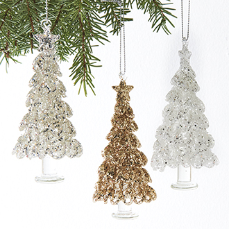 Christmas tree, glass w. string & glitter – 12CM, 3 ASS.