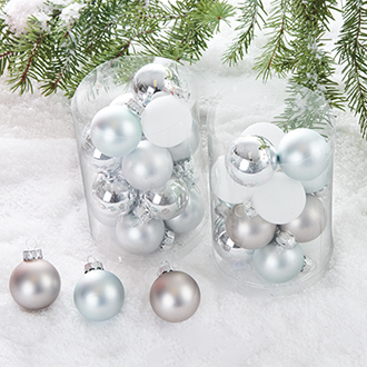 Glass balls, silver & white – 4CM, 2 ASS., 16/BOX