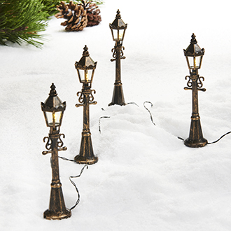 Lamppost, plastic, w. light (battery) – 12CM, 4/SET