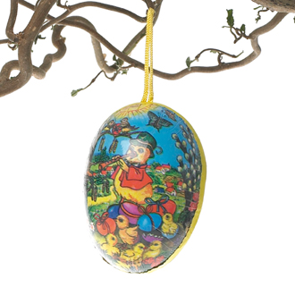 Paper egg w. cock & chickens – 15CM, 2 ASS.