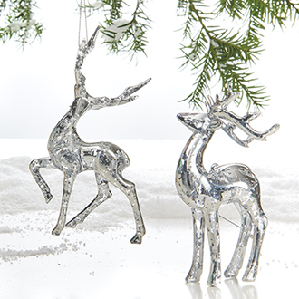 Reindeer, glass, silver w/string – 12CM, 2 ASS.
