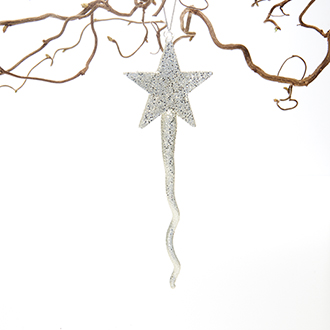 Star on spiral, glass with silver glitter & string – 20CM