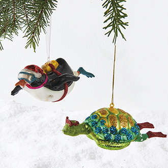 Turtle/penguin, glass w. string – 14CM, 2 ASS.