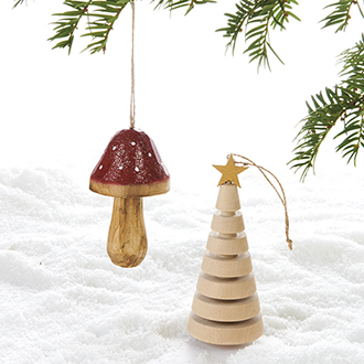 Wooden Christmas deco. to hang, H: 11-14cm – 2 ASS.